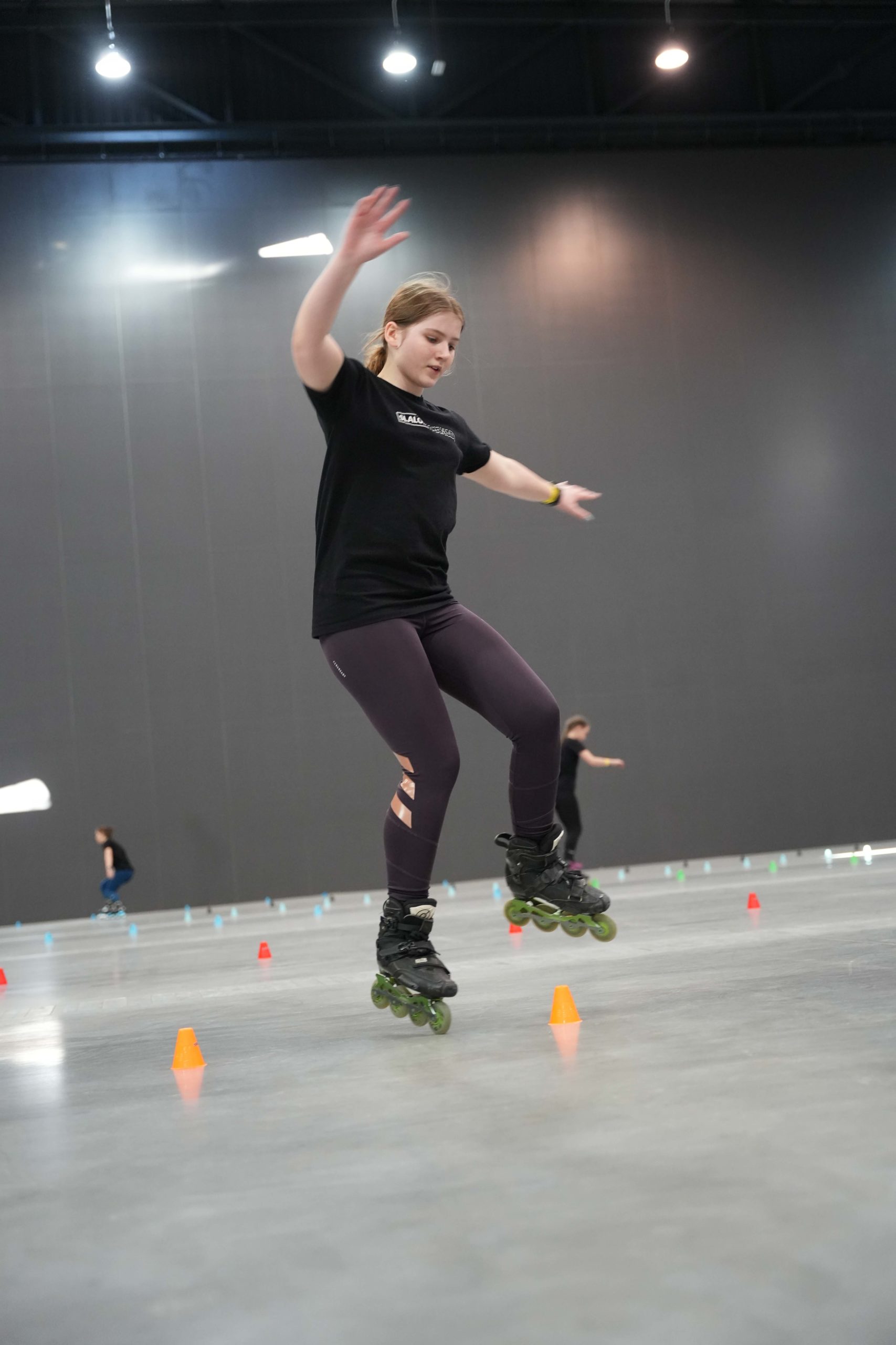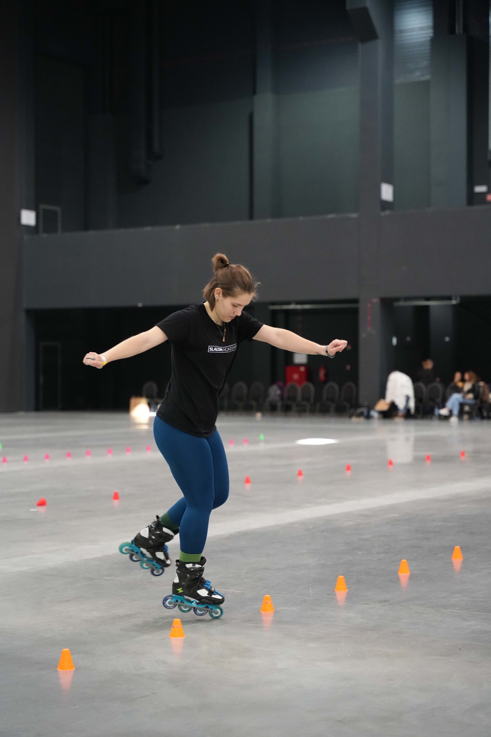 Na początku dziewczyny zmierzyły się z konkurencją speed slalom, która polega na jak najszybszym pokonaniu toru 20 kubków na jednej nodze. Czas mierzony jest przez fotokomórkę. W tej konkurencji liczy się zarówno szybkość jak i dokładność. Za każdy potrącony lub pominięty kubeczek dolicza się 0,2 sekundy do czasu.